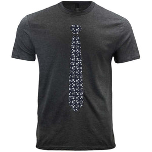 The t-shirts are made from a comfy blend of cotton and polyester. They have a soft texture and a heathered finish for a lightweight feel. This is a slightly slimmer fit (but not too skinny) tee, which we prefer. (See size details below.) The necktie design measures about 3-inches wide and 15.5-inches long. This is shorter than an average man's necktie, but looks just right on this cool novelty t-shirt. The tie design is a stretchy film transfer that we adhere on top of the shirt. The result is vibrant and resists peeling, cracking or fading up to 70 washes with proper care. (Care instructions are below.)