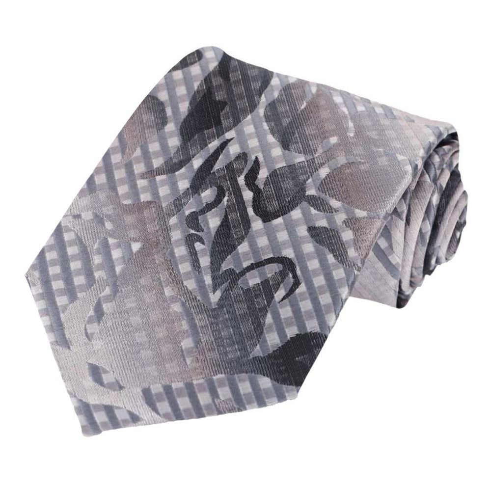 You're going to love the details in this tie. The floral pattern is scattered across a geometric background. The color is mainly gray, but there are some touches of black, as well. We really like this one for the office and it works well in every season.