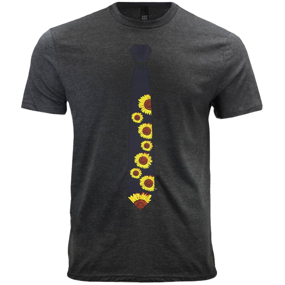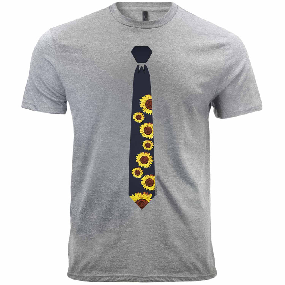 This tie might be fake, but those are photos of actual sunflowers on this men's t-shirt. We took the photo ourselves to create this dressed up novelty tee. Wear it to mow the lawn, work in your garden or to have some fun with your date-night attire. You have your choice of the design on a light or dark gray shirt.