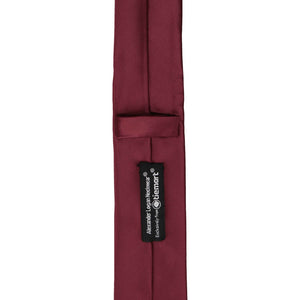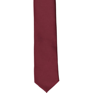 This tie is our skinniest width at 2-inches wide. It's made from heavyweight woven material with slight ribbing. The burgundy tie is durable and easy to tie, too. The finish is in between shiny and matte, which we think you'll like.