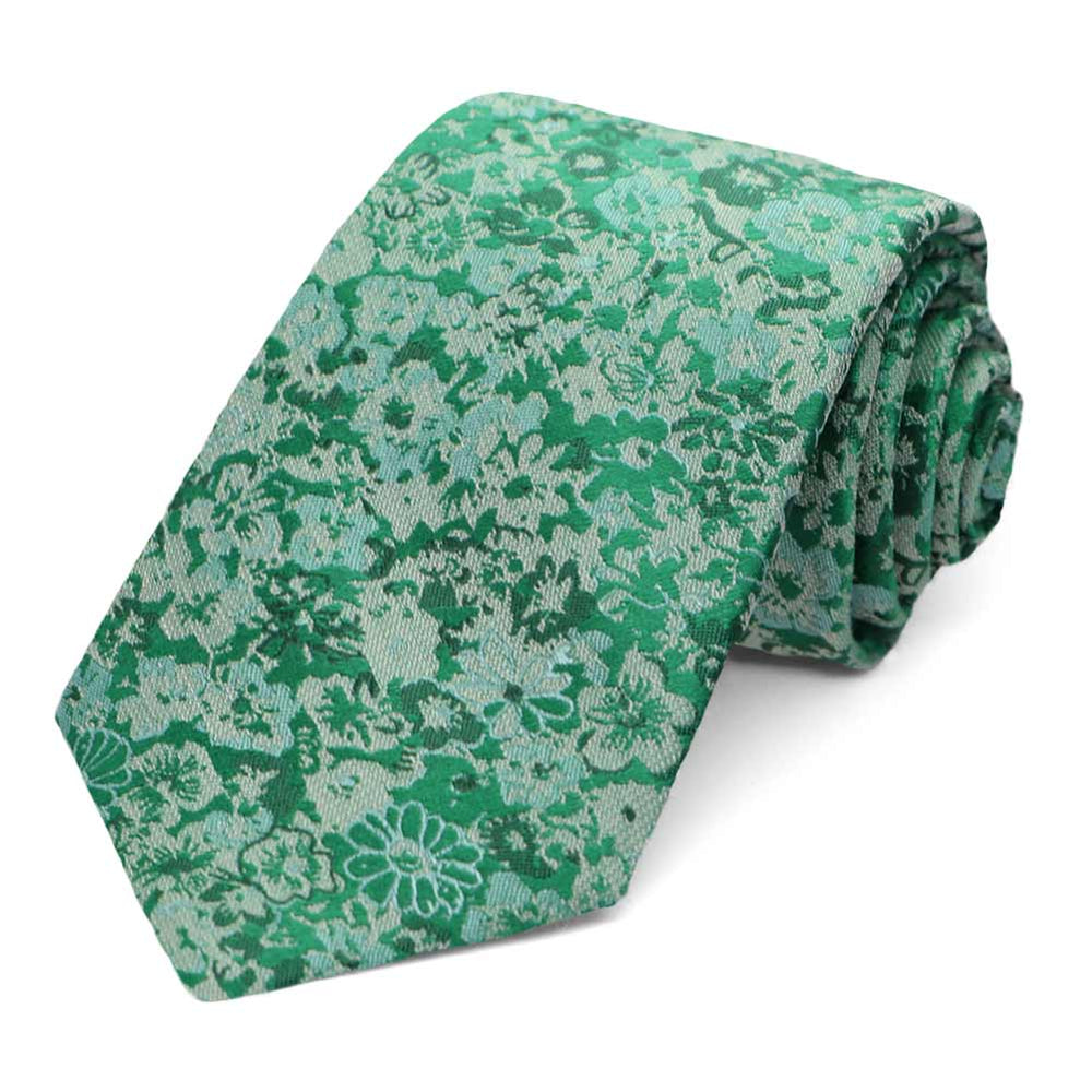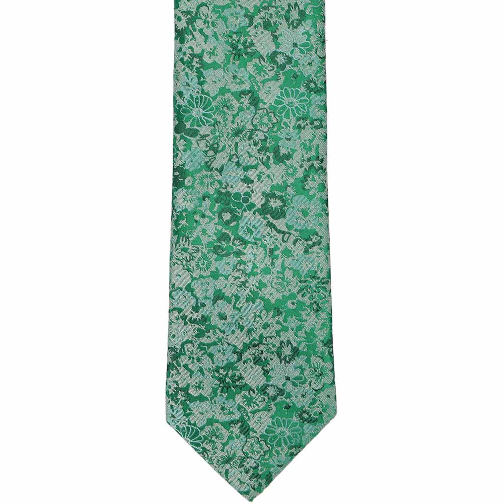 Green Member Floral Silk/Viscose Narrow Necktie, 3" Width