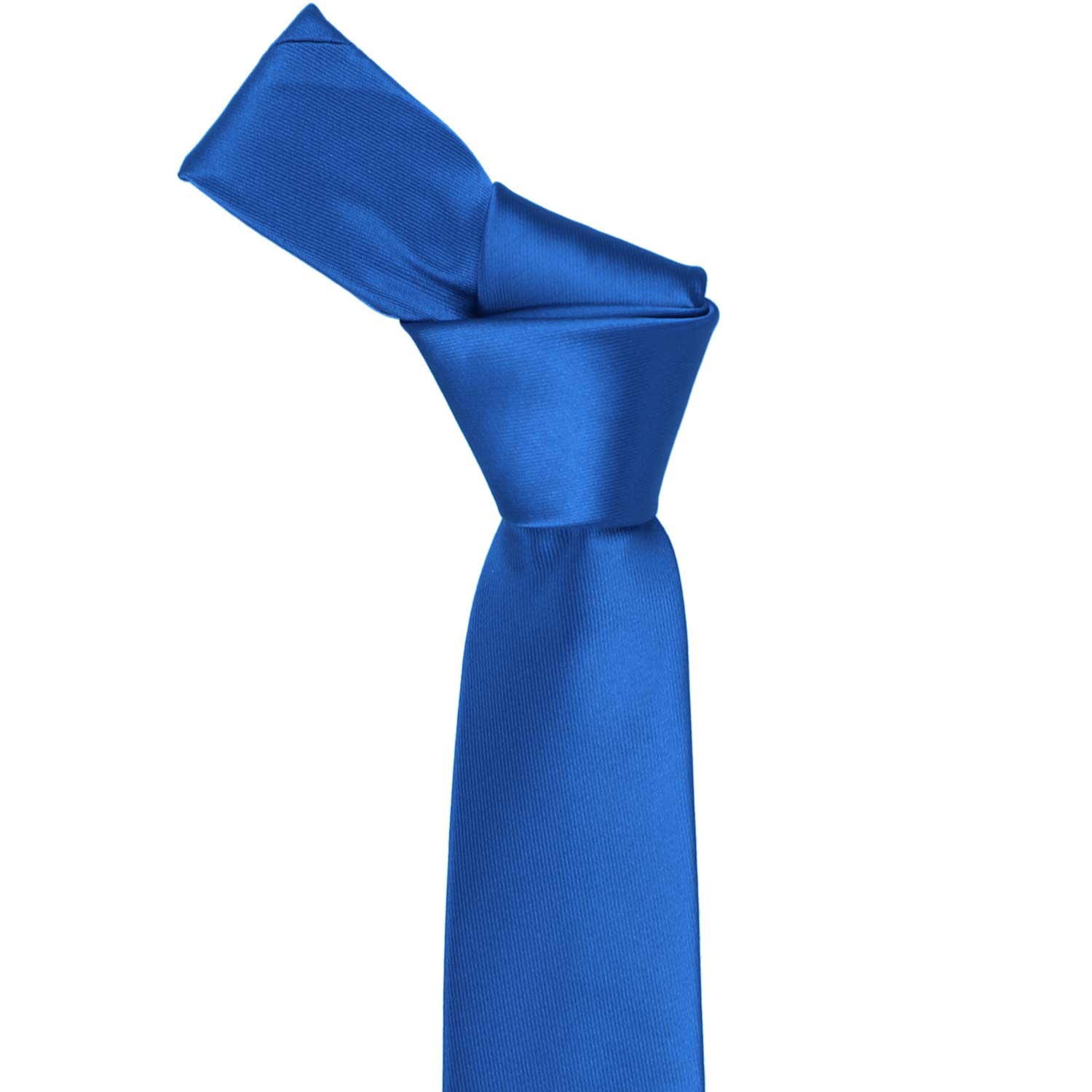 This royal blue slim necktie provides a subtly trendy look without going too skinny. The 2.5-inch width measures 0.5-inches wider than today's ultra-trendy skinny ties, but about 1-inch skinnier than a traditional men's tie. The in-between width makes it a popular choice for fashionably outfitting a large group of different-sized men or teens. Made from heavyweight woven material with slight ribbing.