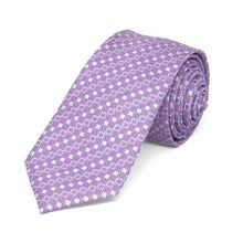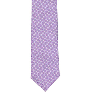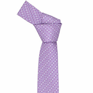 Add a touch of charm to your wedding day with this light purple and white slim necktie. The subtle square pattern adds texture while maintaining an elegant, understated look. The versatile purple hue pairs as effortlessly as a solid tie, making it a perfect choice for weddings or other formal events like Prom or Homecoming. Whether you pair it with a navy, gray, black, or tan suit, this tie is a stylish and versatile addition to your special day.