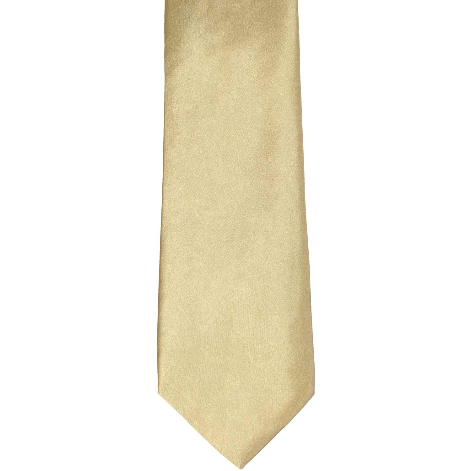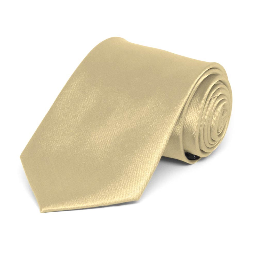 This sparkling champagne boys' necktie is the perfect neutral for his next formal event. The shimmering color is a gorgeous, light brown hue that adds elegance without being distracting. Since it's a neutral tie, you can't go wrong pairing it with any suit! We think it looks stunning with a classic black suit, while a navy blue suit provides a handsome, modern update. He'll look exceptionally refined and feel completely grown-up when he ties the tie himself.