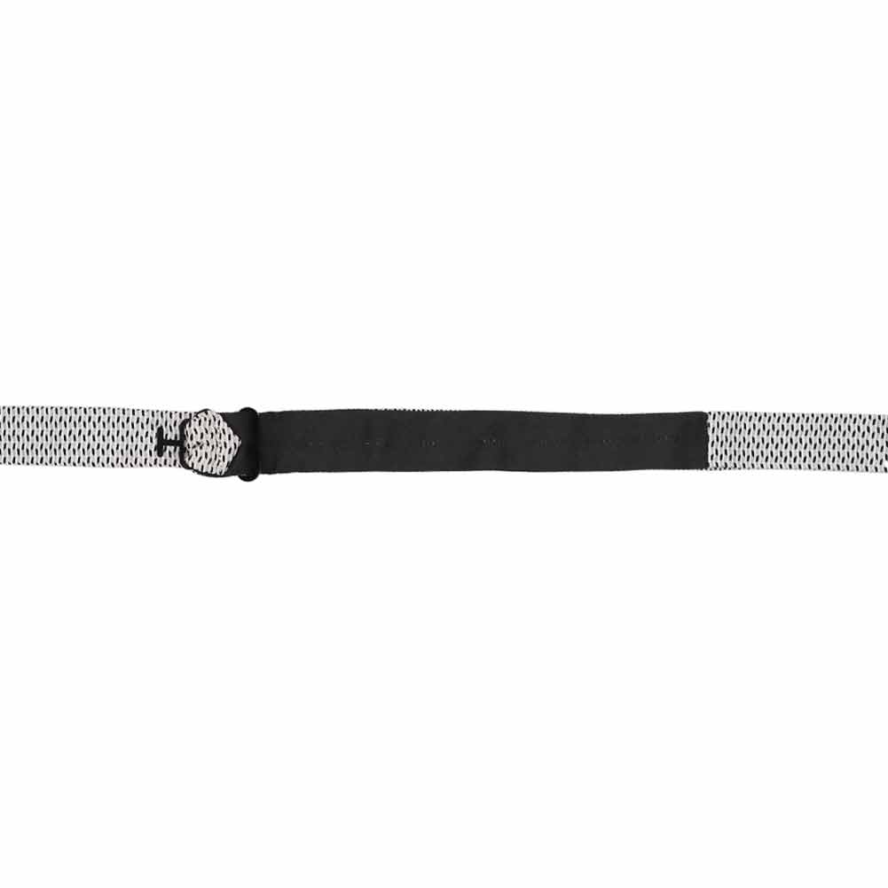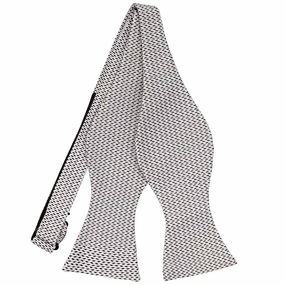 Smart and stylish. A slightly modernized chevron pattern in black and silver will have people noticing your keen sense of style. Pair this self-tie bow tie with a crisp, white oxford and black slacks, or a black suit for a formal event. No matter how you wear it, you're sure to have people asking where you got such a one-of-a-kind bow tie.