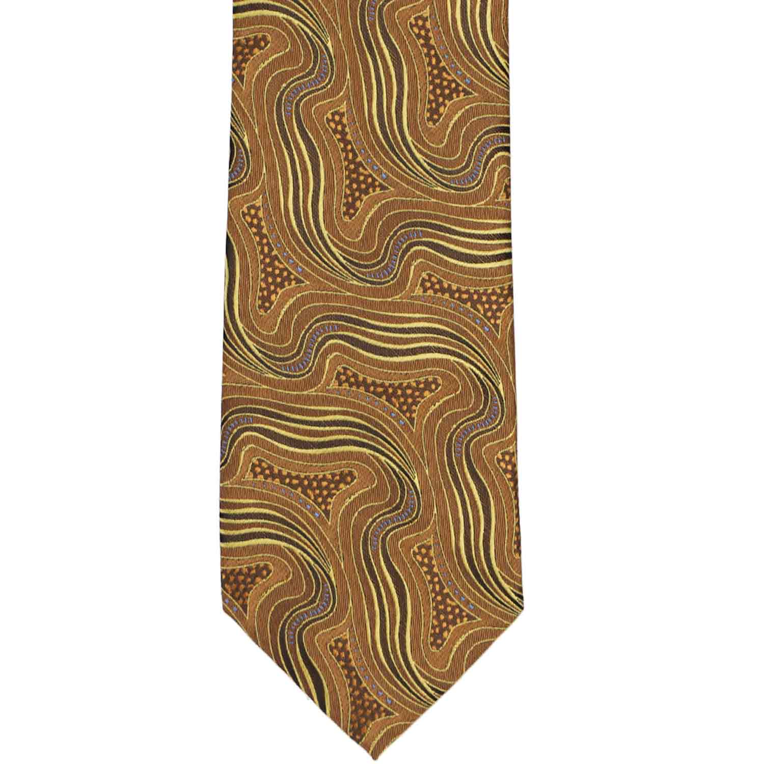 Thinking of cozy fall attire? The unique swirl pattern of this caramel brown tie makes it a stand out. The multiple shades of tan and brown will match well with khakis and your favorite brown dress shoes. Perfect for a casual fall look or pair it with a white oxford for a sharp office look. Add the included pocket square for a finishing touch.