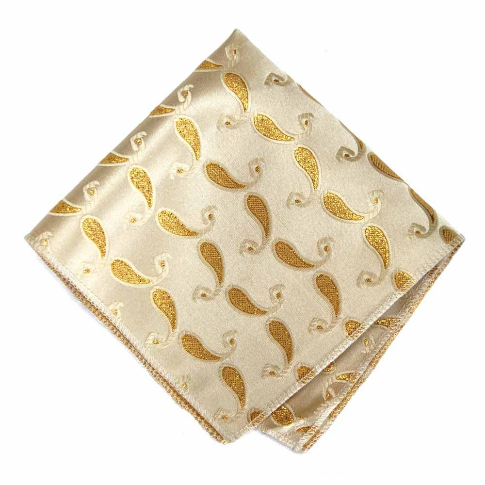 A special purchase pocket square, available while supplies last. The paisley design is accented with Lurex threads for a shiny, metallic look. Perfect for formalwear or a night out. The pocket square is one-sided and measures 10-inches by 10-inches.