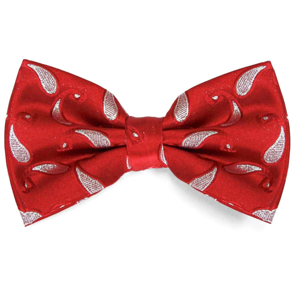 A special purchase bow tie, available while supplies last. The paisley design is accented with Lurex threads for a shiny, metallic look. Perfect for formalwear or a night out. The bow tie is pre-tied with a band collar that expands to fit most adults.