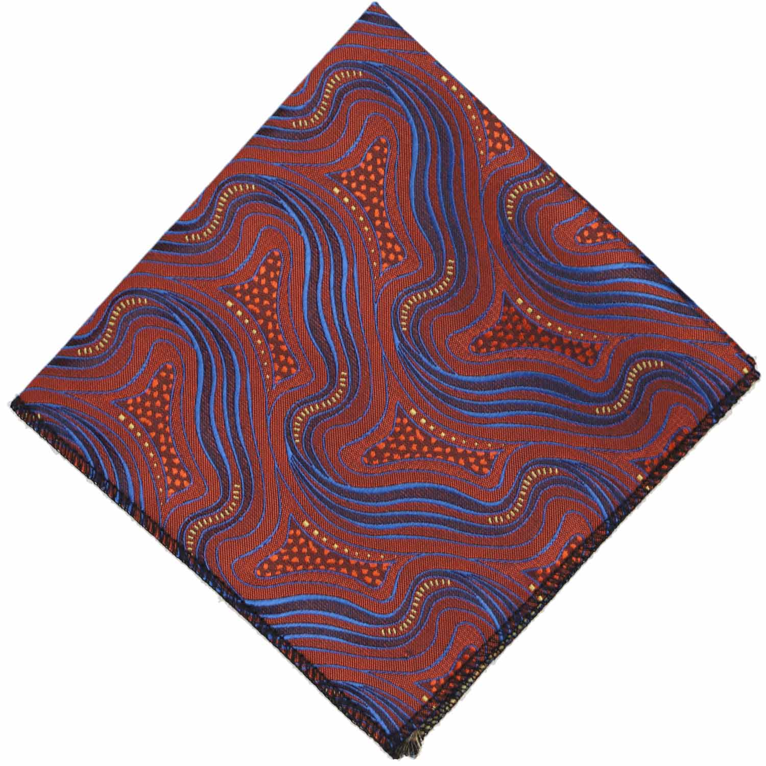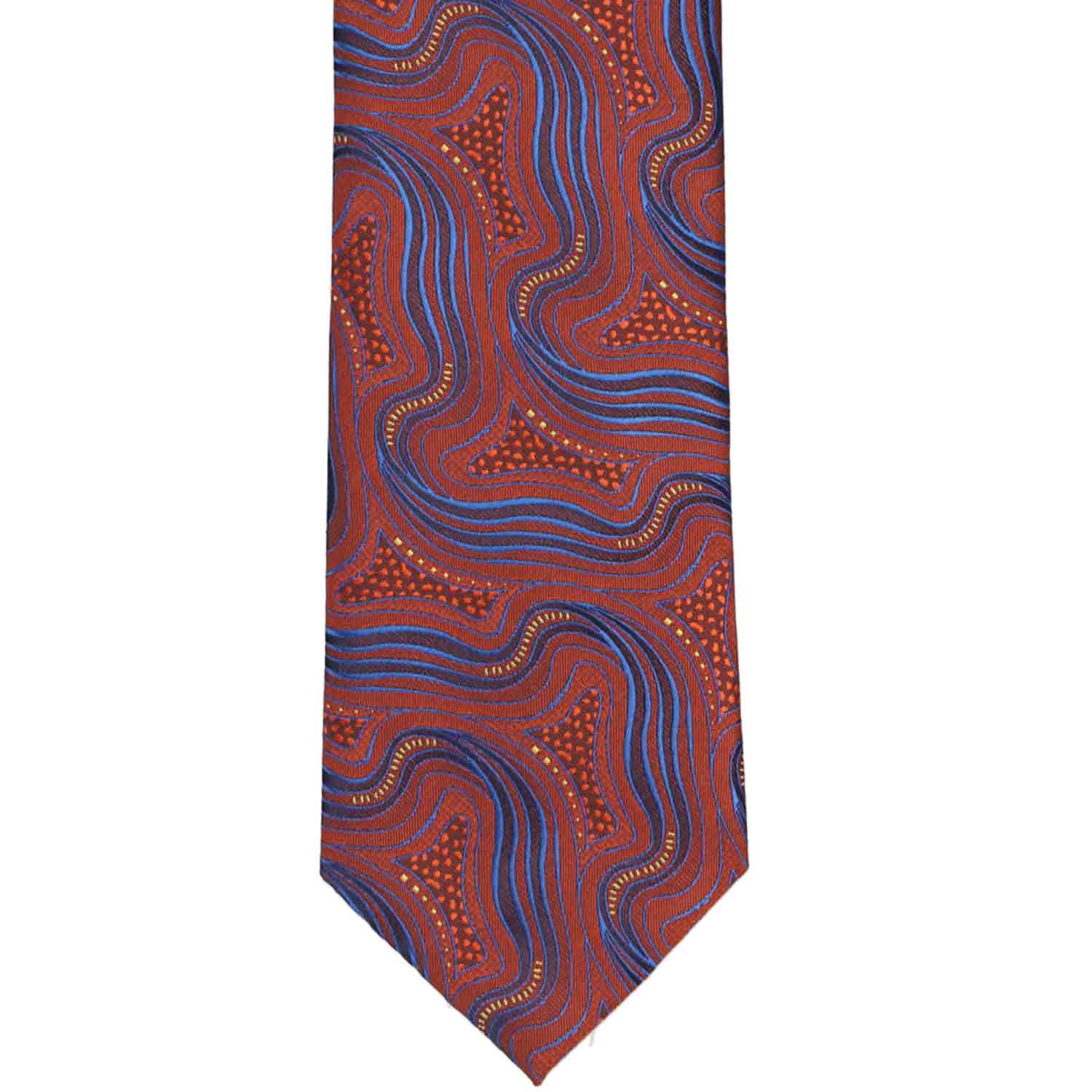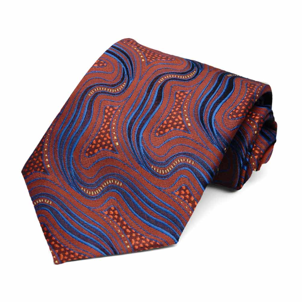 Sometimes, you just want to stand out from the crowd. Do just that with this unique swirl pattern tie in shades of rust and bright blue. Pair it with khakis for a casual work look or dress it up with the included matching pocket square. However you wear it, you're sure to be noticed!