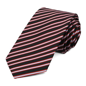 Take the guesswork out of what to wear in the morning. From a day at the office, to a night out, you'll find it easy to match this slim tie to your favorite pair of black slacks or black suit. This men's necktie features a woven striped pattern in red and black.