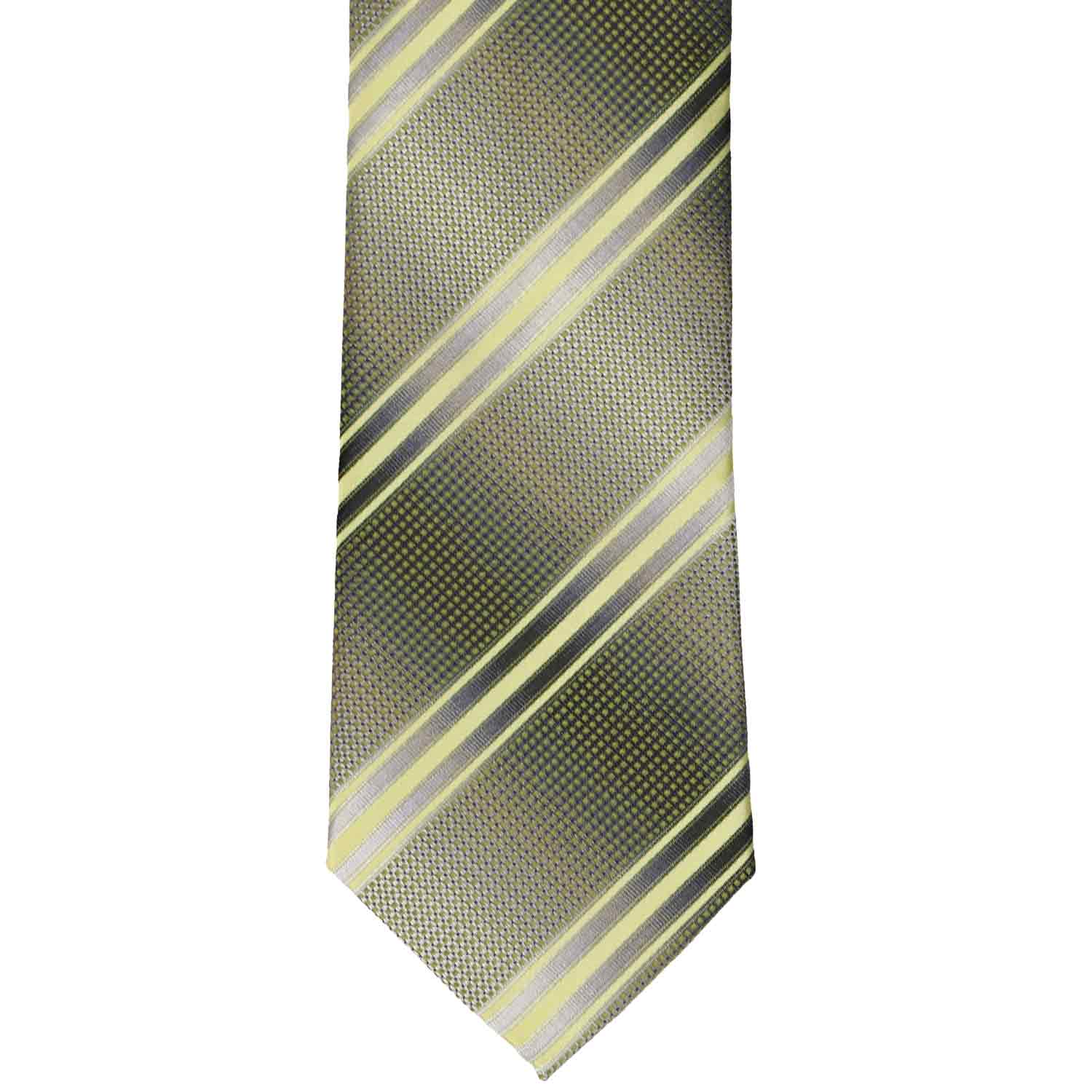A modern take on a classic pattern. Slim stripes and a textured woven background make this green and gray tie an easy match to a tan or gray suit. Look your absolute best by pairing this tie with an off-white dress shirt, a light gray suit and a silver tie clip. A matching pocket square is included for the finishing touch on your attire.