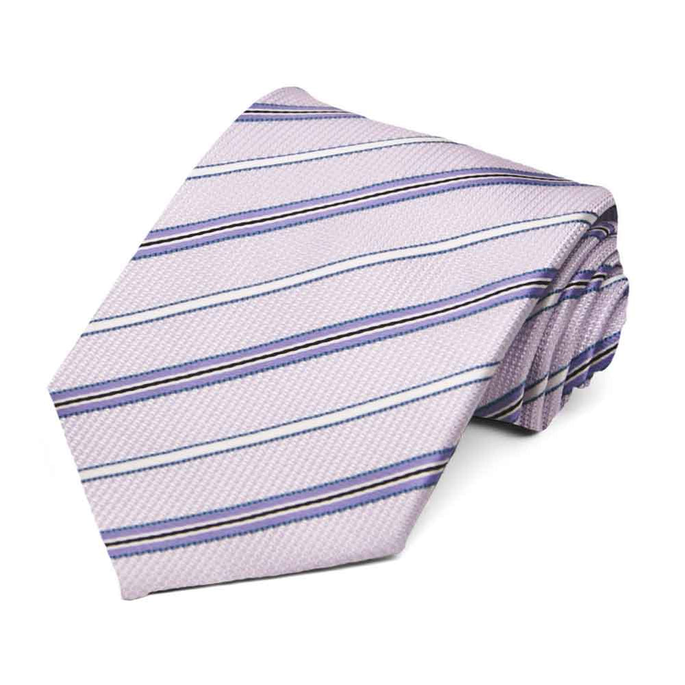 Let everyone know that spring has arrived with this tone-on-tone lavender striped tie. Perfect for your Easter attire. We suggest pairing this tie with a light tan or navy suit. A matching pocket square is included for formal occasions. Wear it to work with khakis and a white oxford for a clean cut look.