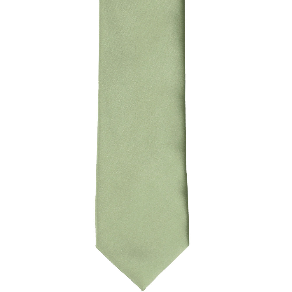 - Slim 2.5-inch sage green tie, cut for a modern wedding look