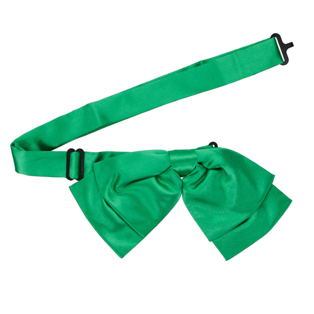 This green floppy bow tie is a popular alternative for women's uniform wear. Also stylish for vintage-inspired men's apparel. It attaches securely around the neck via an adjustable band that expands to fit neck sizes from 12 to 21 inches.