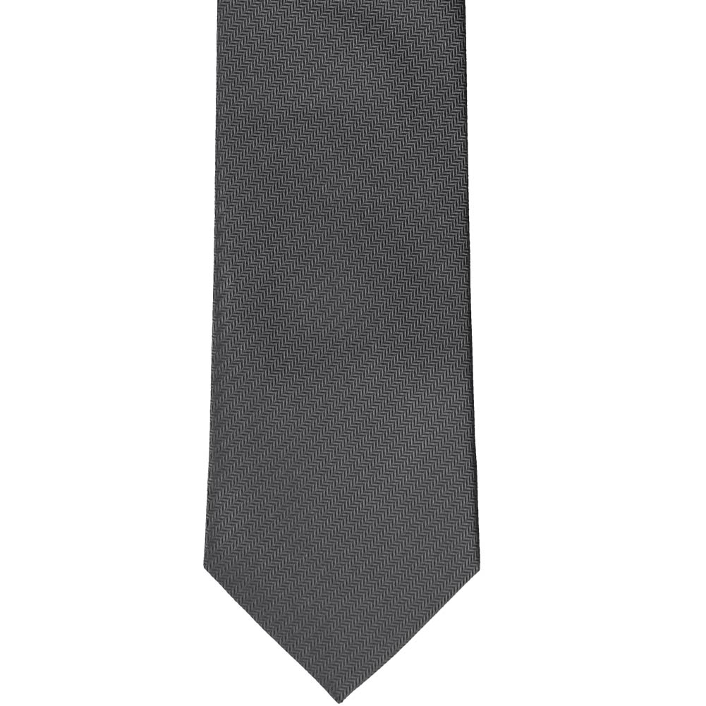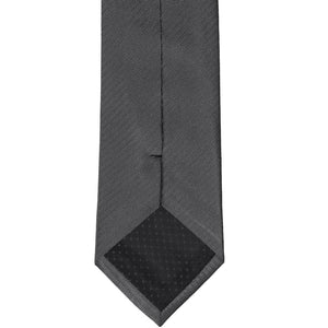 This graphite gray tie is made from 100% silk and cut to a standard men's length and width. While it's not particularly shiny, the finish has an elegant sheen that gives the tie a rich feel. You might think light and flowy when you think of silk ties, but this one is more of a medium weight.