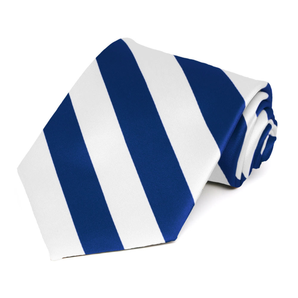 Every man should own a classic collegiate striped tie or two. Its ease of pairing with dress shirts and suits alike has made this design a timeless favorite over the years and a must have for school and business attire. Try it in this royal blue and white color combination and add the available matching pocket square for that finishing touch. Also available in self-tie and pre-tied bow ties, socks, suspenders, boys' sizes and more.