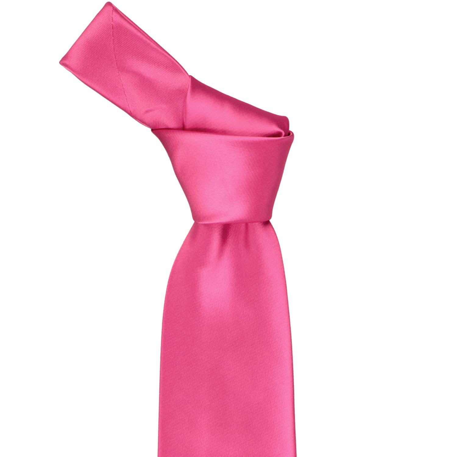 This hot pink tie is ready to add a splash of color to your look. The bright color is guaranteed to set your group or outfit apart. Since it's a solid color, it's easier to match than you might think. We find it pairs well with most suit colors, but try navy blue for the most contrast. For dressier occasions, add the matching pocket square (sold separately) to your jacket.