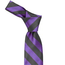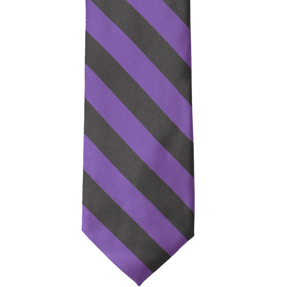From school spirit to formalwear, check out this dapper purple and dark gray striped tie. The colors are easy to match, so pair it with a button down and slacks or your favorite black or dark gray suit. Traditional 0.75-inch wide stripes give this one a classic feel.