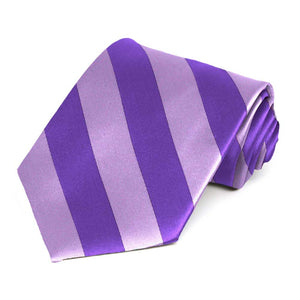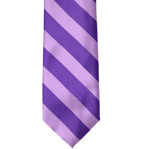 Get ready for the school year in this purple and lavender striped tie. The two-color stripes are just the right size for that classic, collegiate look. Wear it with a button down and slacks or dress it up if needed. It's also available in a narrow, 3-inch width (sold separately) for those seeking a slimmer size.