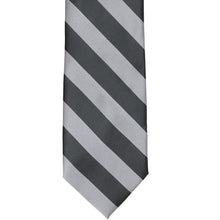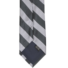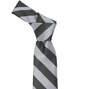 This subtly striped silver and dark gray tie is popular for everyday attire. You'll find it easy to mix into your existing wardrobe thanks to the classic, collegiate stripes. For formal wear, this tie pairs best with a tailored black suit. Purchase a solid color black or silver pocket square to complete your look.