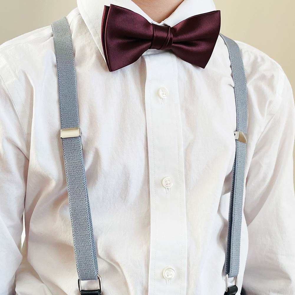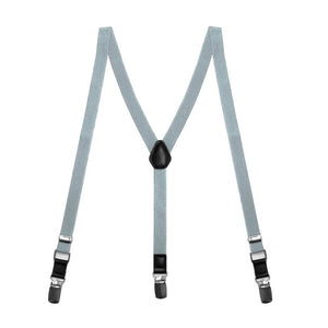 What a perfect neutral color for his next dressy occasion. These boys' platinum gray skinny suspenders are a must-have for ring bearer outfits, holidays and those annual family photos. The straps are stylish and cool in a skinny, half-inch size. These look great paired with a bow tie and we have an assortment of solid colors and patterns available for your choosing.