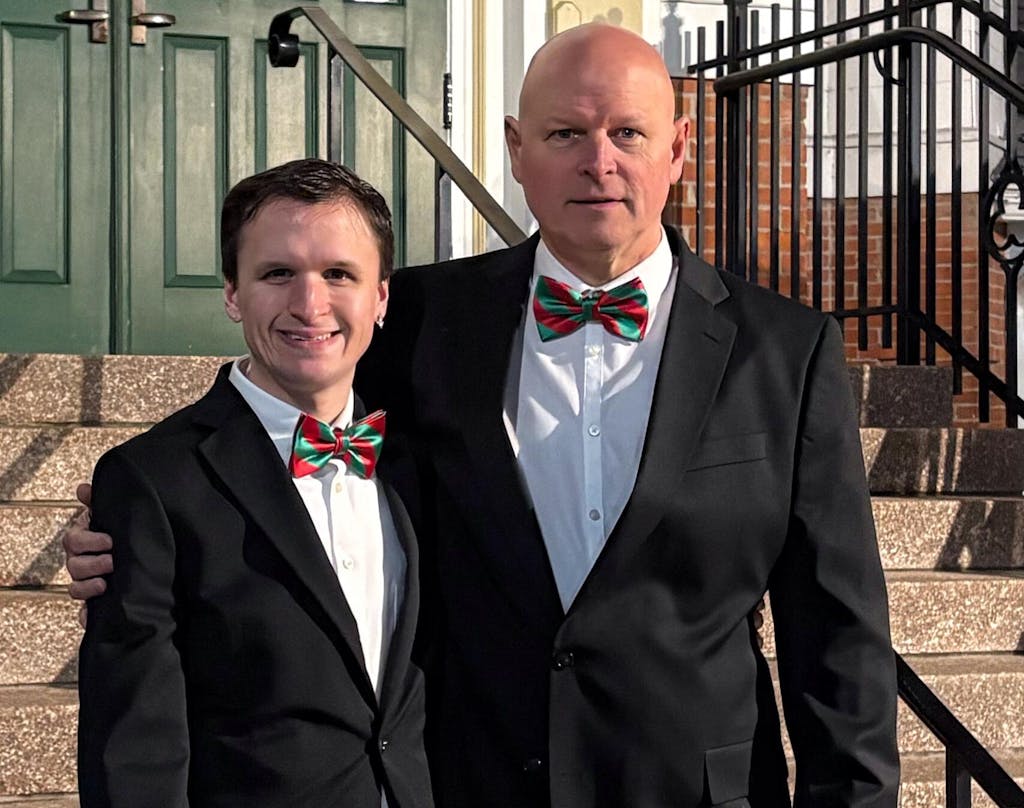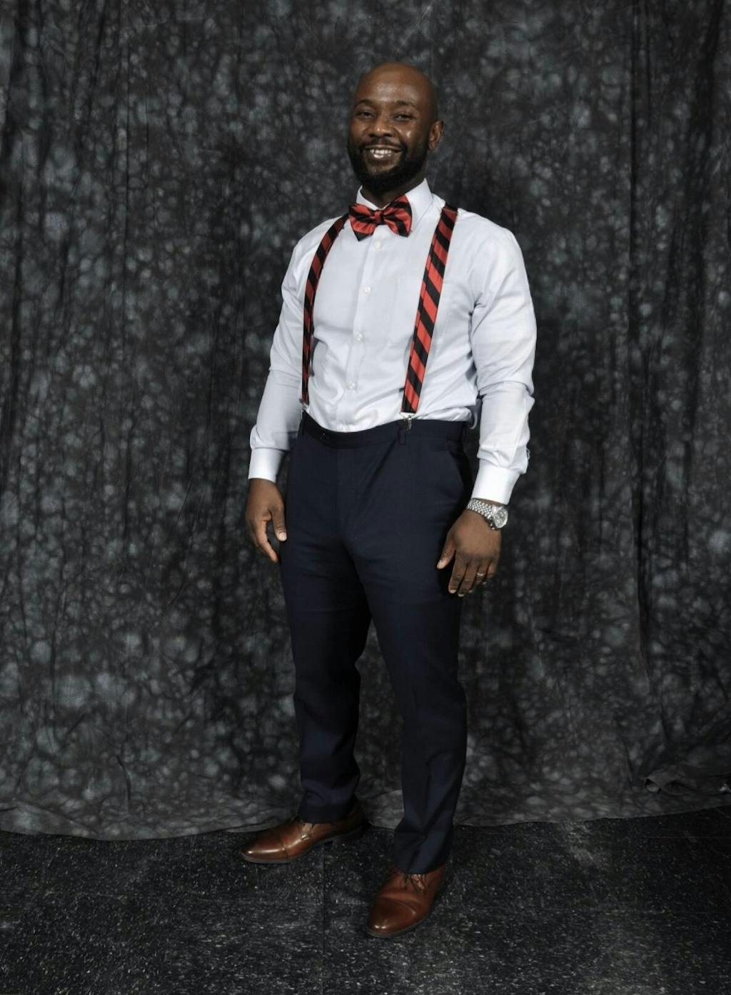 This bright coral and navy blue striped bow tie features a pre-tied, band collar style that expands to fit neck sizes up to 19-inches. Made from heavyweight woven material with a smooth satin finish. Look for this color combo in a men's necktie, skinny tie and pocket square, too.