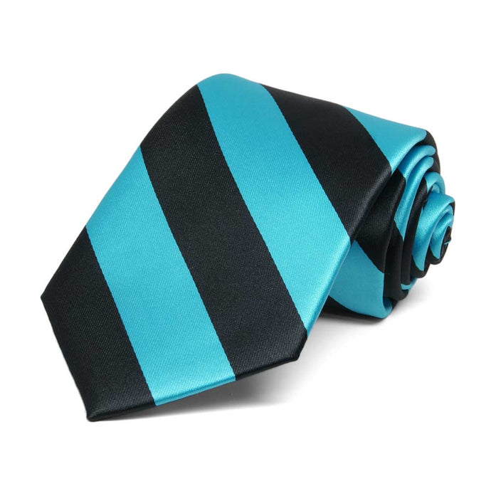 Turquoise and Black Striped Skinny Tie, 2" Width