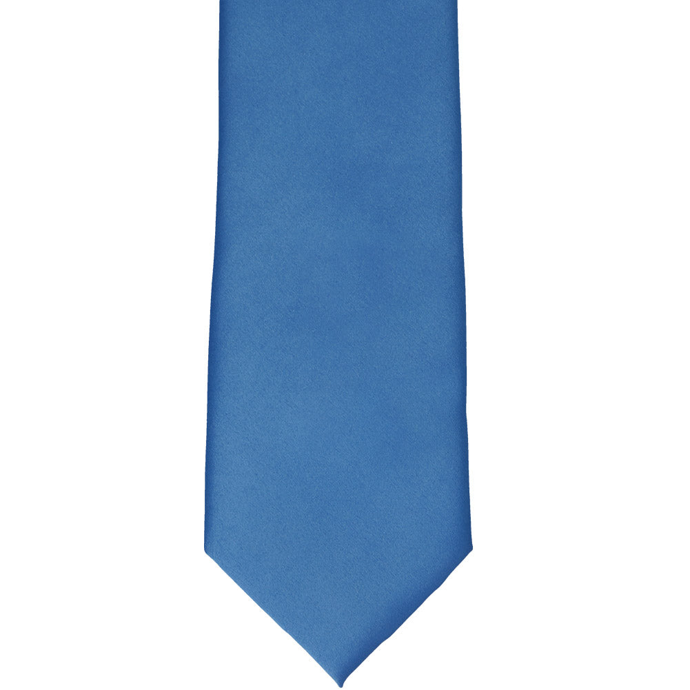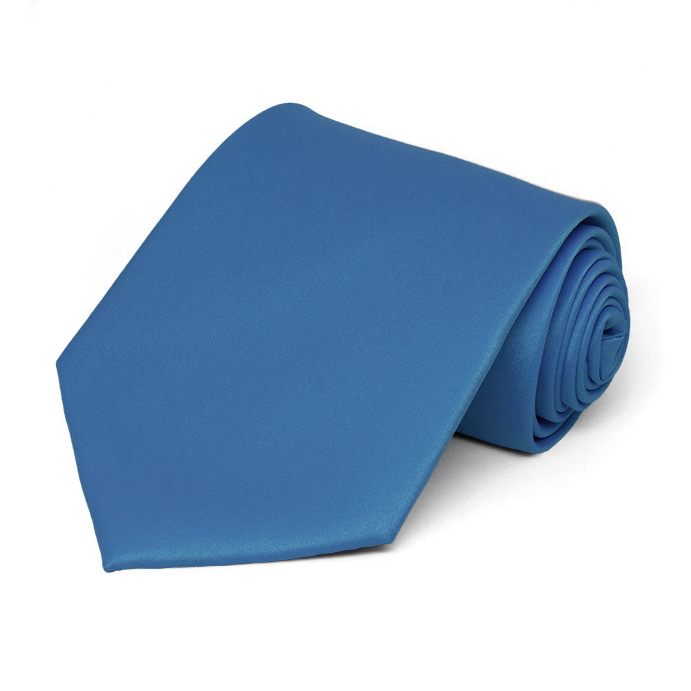 What a great tie for employee or large group attire! The 3.25-inch width complements both men and women and the 58-inch length is standard sized to fit most adults. These blue ties are made from a durable, all polyester material with a very light satin finish. Your group or staff will look professional and put together in this tie. The color is a basic blue, not too light, not too dark.