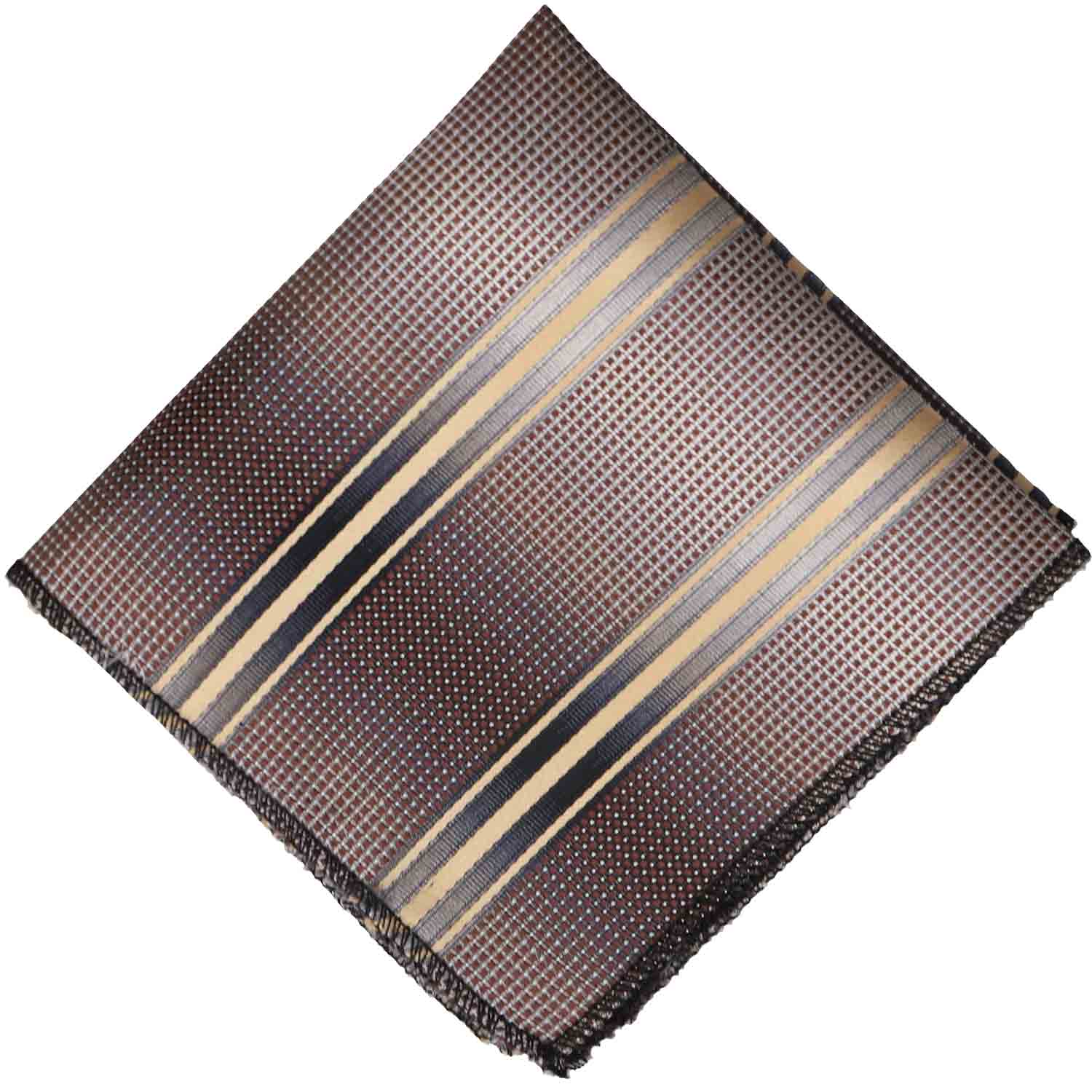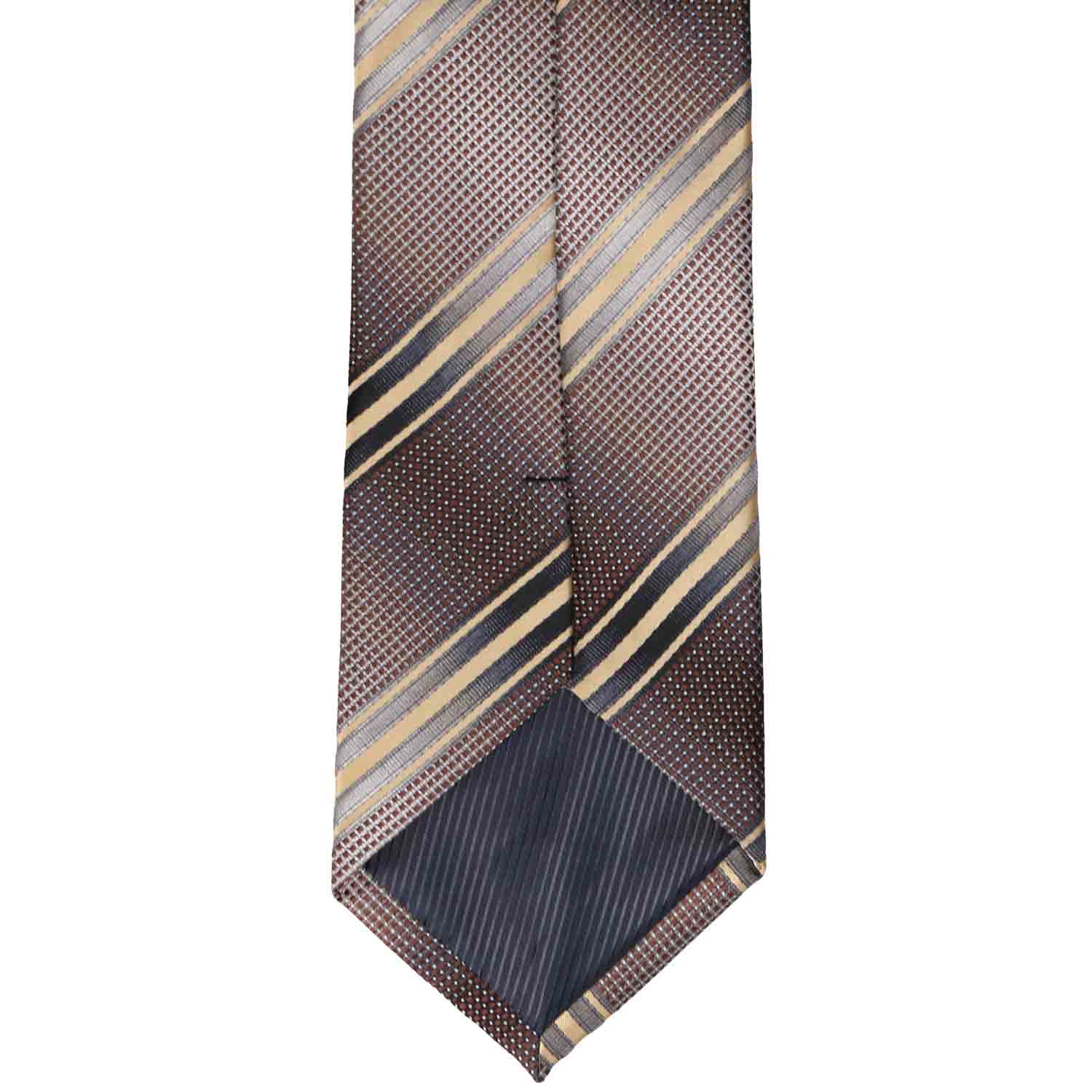 A modern take on a classic pattern. Slim stripes and a textured, woven background make this brown and silver tie a great match for a tan or navy blue suit. Look your absolute best by pairing this tie with an off-white dress shirt, a navy blue suit and a silver tie clip. A matching pocket square is included for the finishing touch on your attire.
