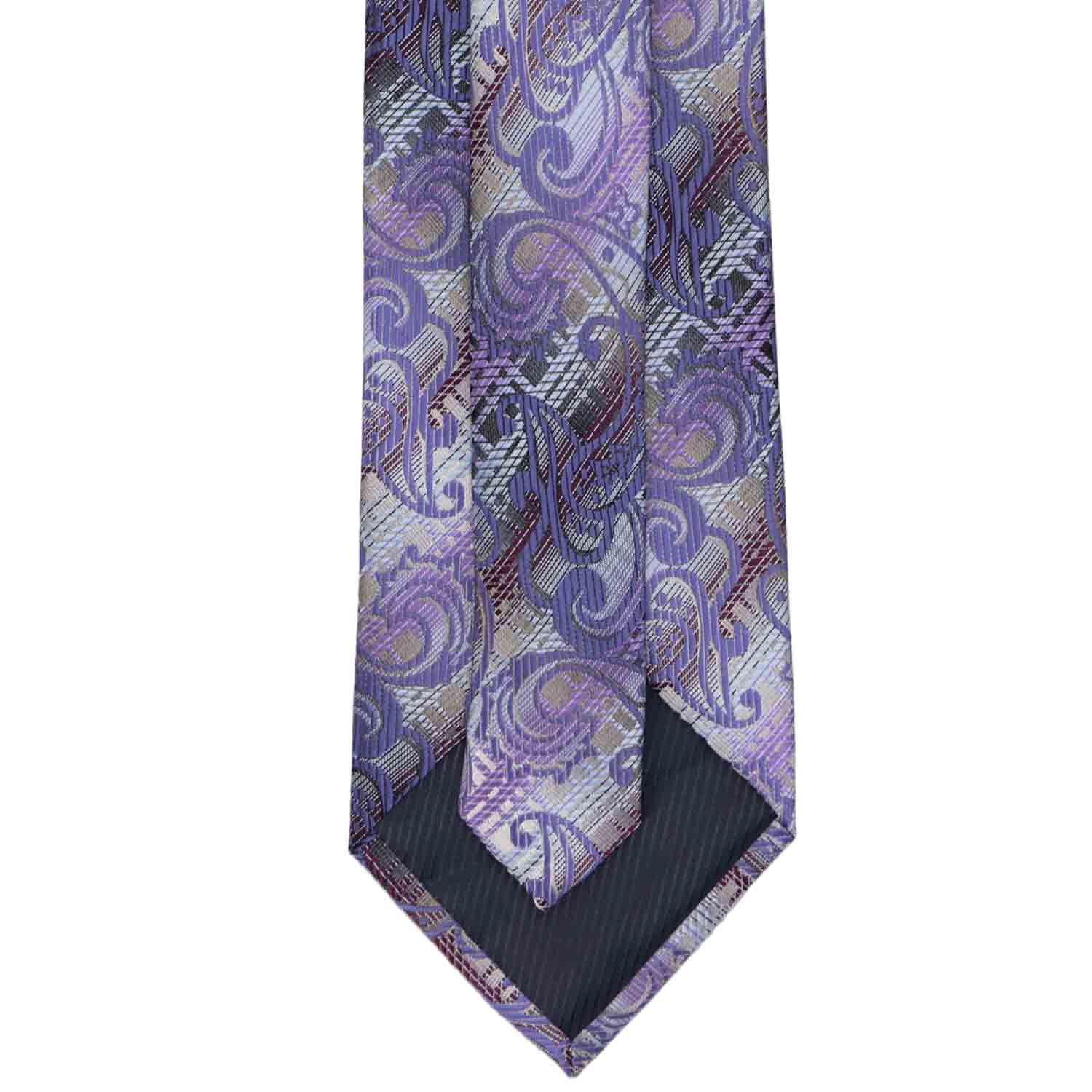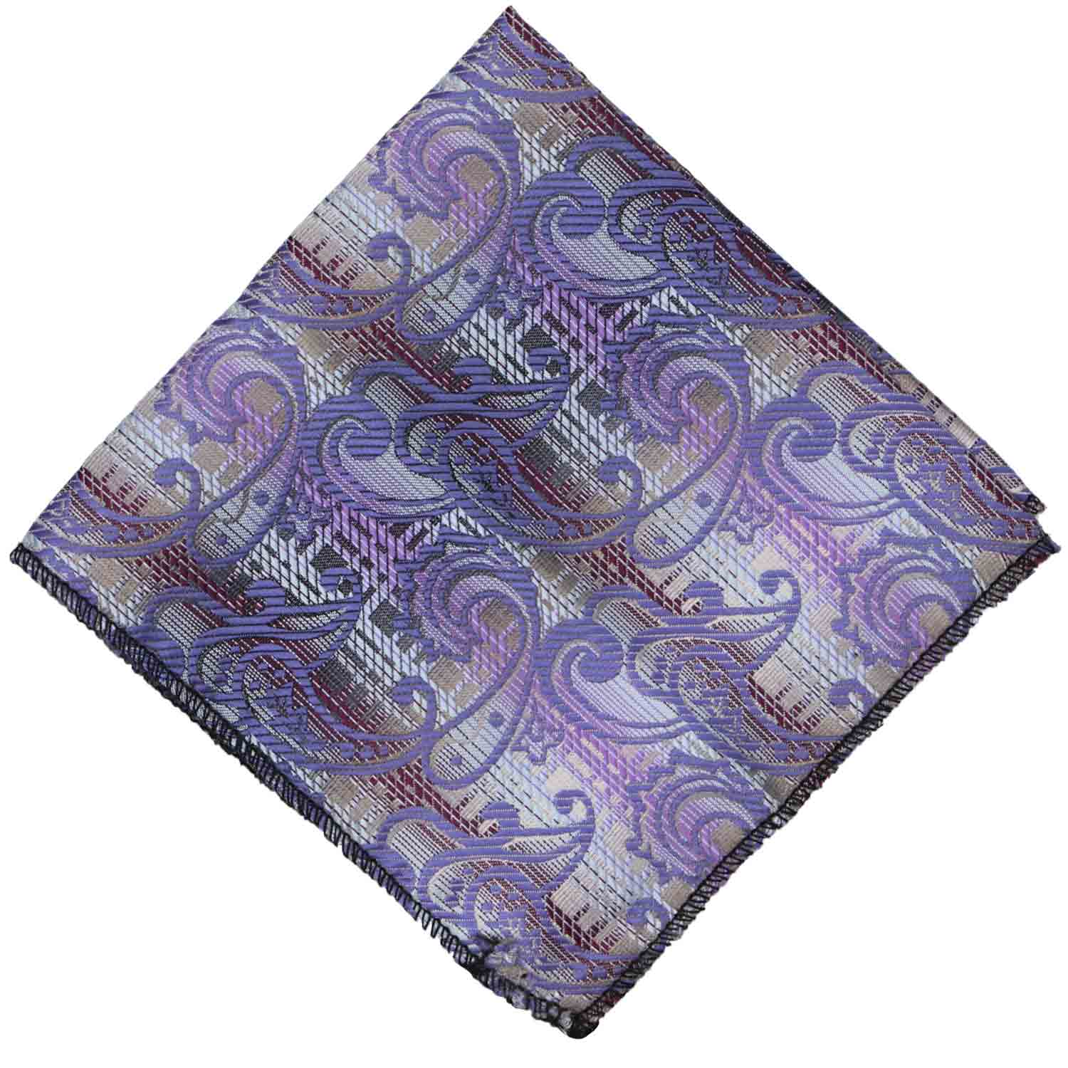 A slim stripe pattern adorns the fancy paisley background of this purple tie. Just right for brightening up your spring and summer wardrobe! A matching pocket square is included for formal occasions. Pair this with a navy or light gray suit for an eye-catching pop of color.