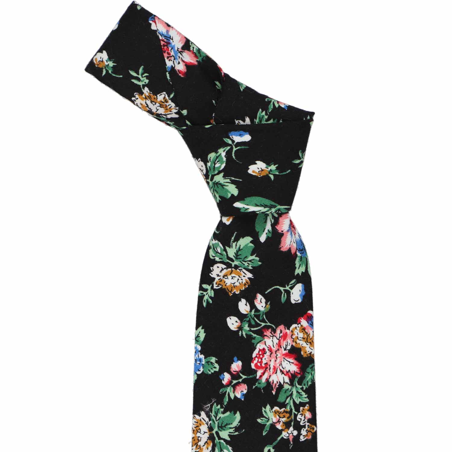 Introducing a floral tie like no other. This black tie features vibrant pink, gold, green, and blue flowers, creating a striking contrast that stands out. Whether you’re heading to the office, a date night, or looking for the perfect wedding tie, this versatile design fits any occasion. Its bold yet refined pattern adds a sophisticated touch to your attire, making it the go-to floral tie for every event.