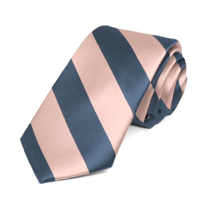 Dusty Blue and Petal Striped Slim Tie, 2.5" Width