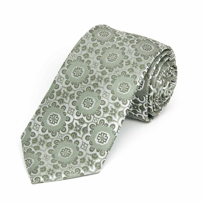 Mint Green Emma Floral Pattern Slim Necktie, 2.5" Width