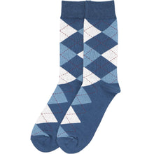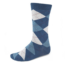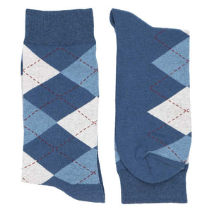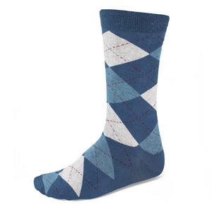 Congrats, you've found your wedding socks! These argyle socks combine a timeless design with modern wedding colors. The diamond pattern is serene (a light dusty blue) and gray, while the background of the sock is steel blue. Subtle brown piping crisscrosses over the design. These elegant argyle socks look incredible with navy blue and gray groomsmen suits.