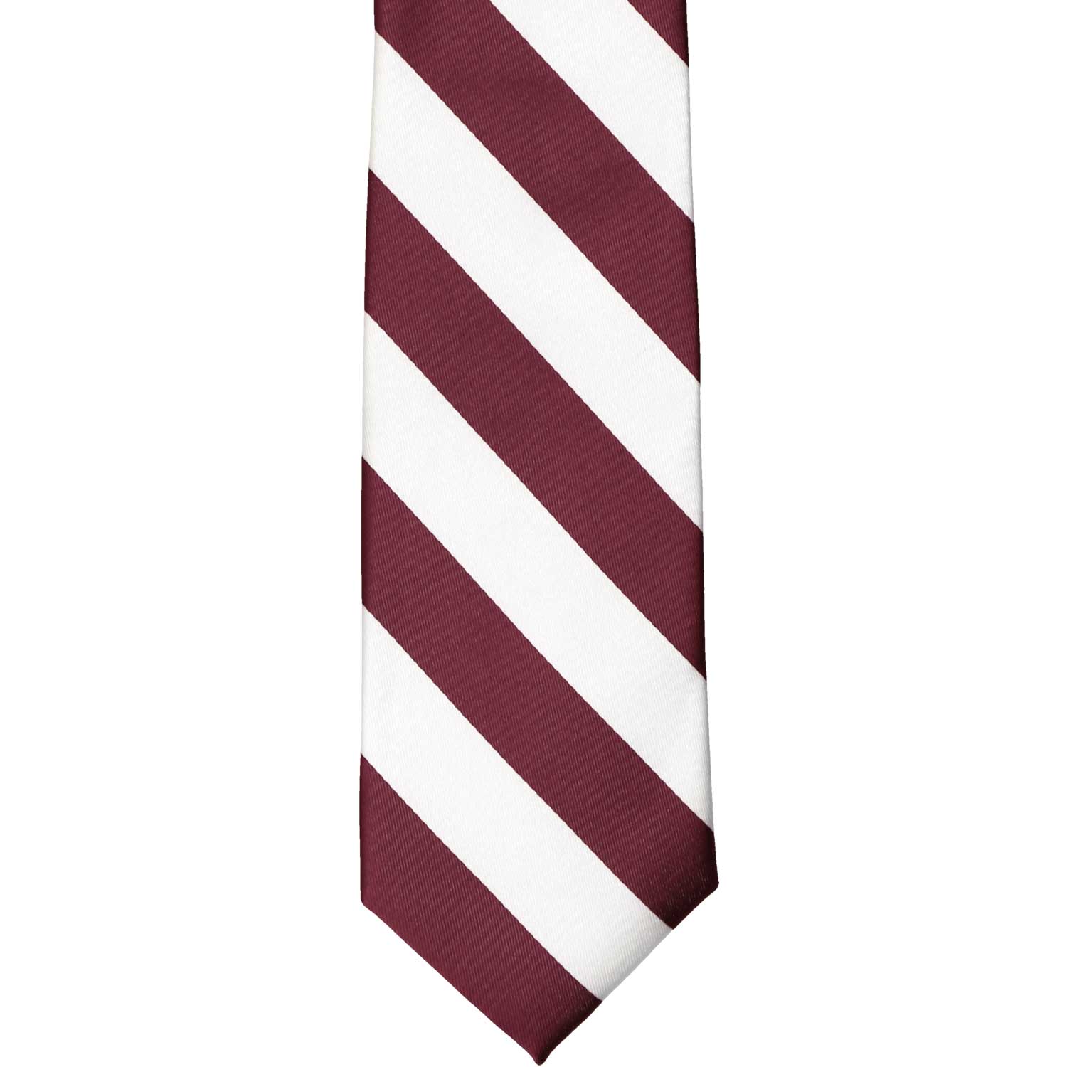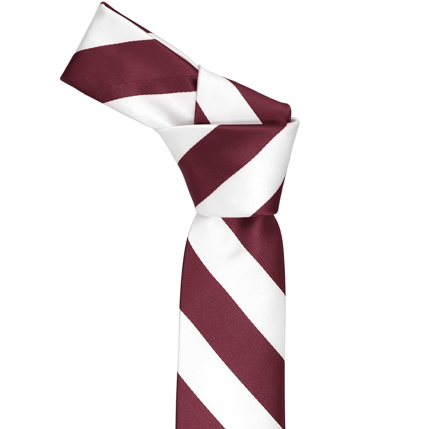Help him get ready to cheer on the team with this classic burgundy and white striped boys' necktie. This combination is a timeless choice for school, sports team, and company colors, making it a perfect piece of attire for game days or formal events. He'll feel the confidence of a grownup when he ties this necktie himself.