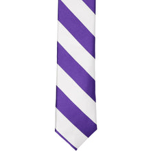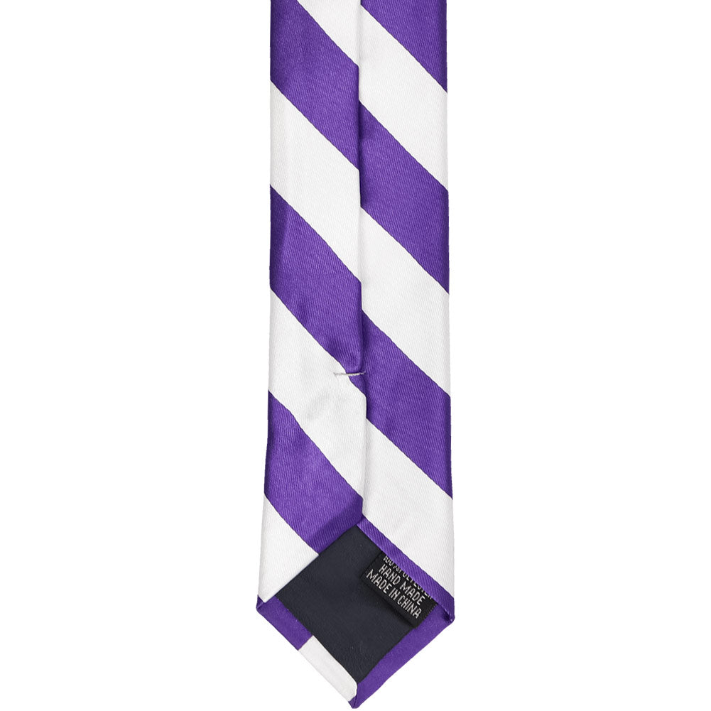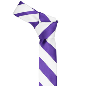 Our most popular striped ties are now available in a trendy, 2-inch width. This skinny purple and white striped tie is made from heavyweight woven material with a smooth, satin finish. Look for this color combo in a men's traditional-width necktie, bow tie, pocket square and boys' sizes.