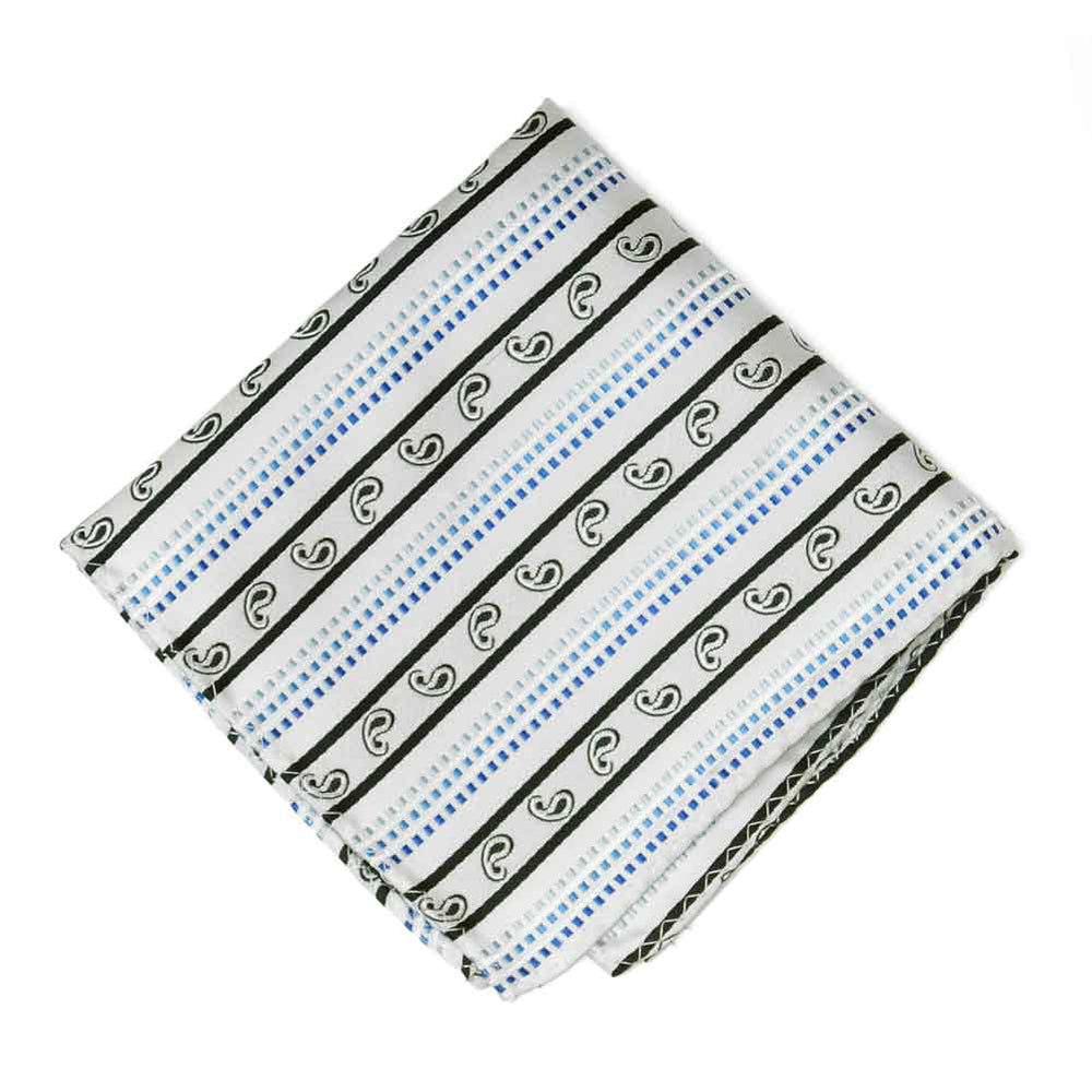 Complete your look with this miniature paisley pocket square. Looks great with a blue necktie! One-sided with finished edges.