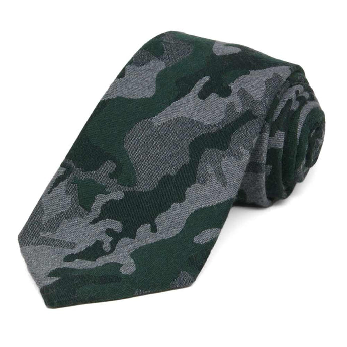 Muted Blue and Gray Principal Plaid Wool/Silk Narrow Necktie, 3" Width