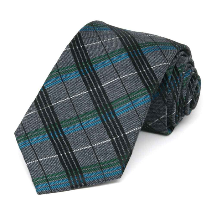 Charcoal Gray Executive Plaid Silk Necktie, 3" Width