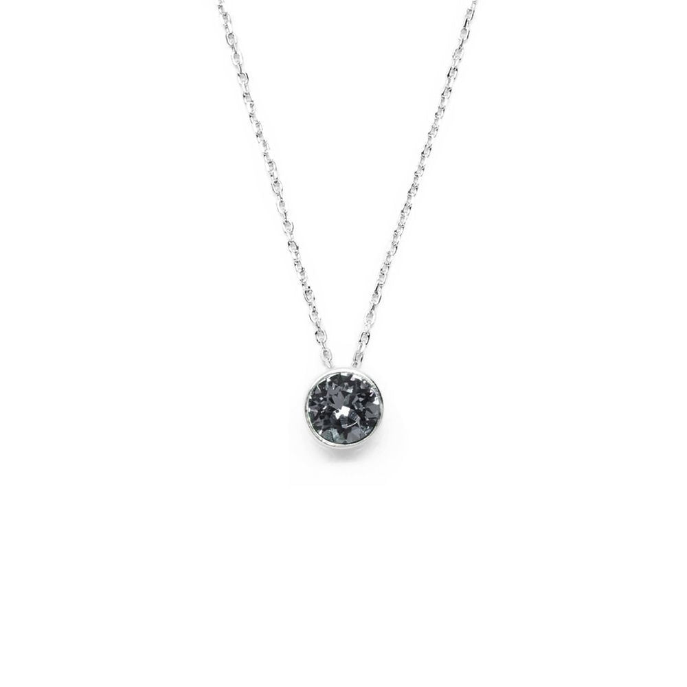 Perfect for weddings! Coordinate your bridesmaid necklaces and groomsmen ties with these small and simple (yet elegant) graphite gray-colored necklaces. The bezel-set circle pendant is made with Swarovski® crystals and includes an adjustable sterling silver chain. Each necklace has a unique code that can be entered at www.swarovski.com/crystals to verify the authenticity of the crystal.