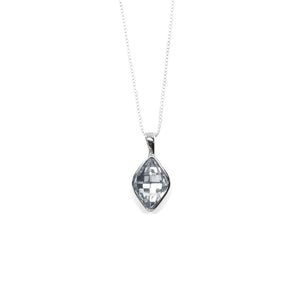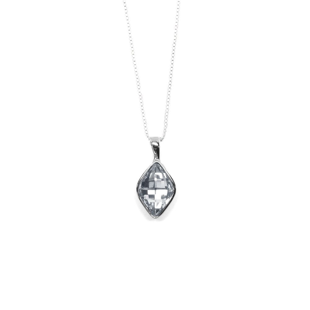 Perfect for weddings! Coordinate your bridesmaid's necklaces and groomsmen's ties with these simple, yet elegant silver-colored necklaces. The rhombus shaped pendant is made with Swarovski® crystals and includes a sterling silver venetian chain. Each necklace has a unique code that can be entered at www.swarovski.com/crystals to verify the authenticity of the crystal.