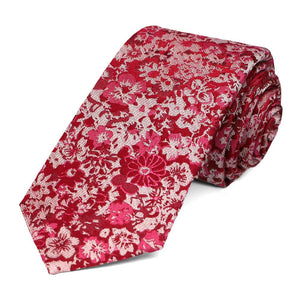 Burgundy Member Floral Silk/Viscose Slim Necktie, 2.5" Width