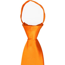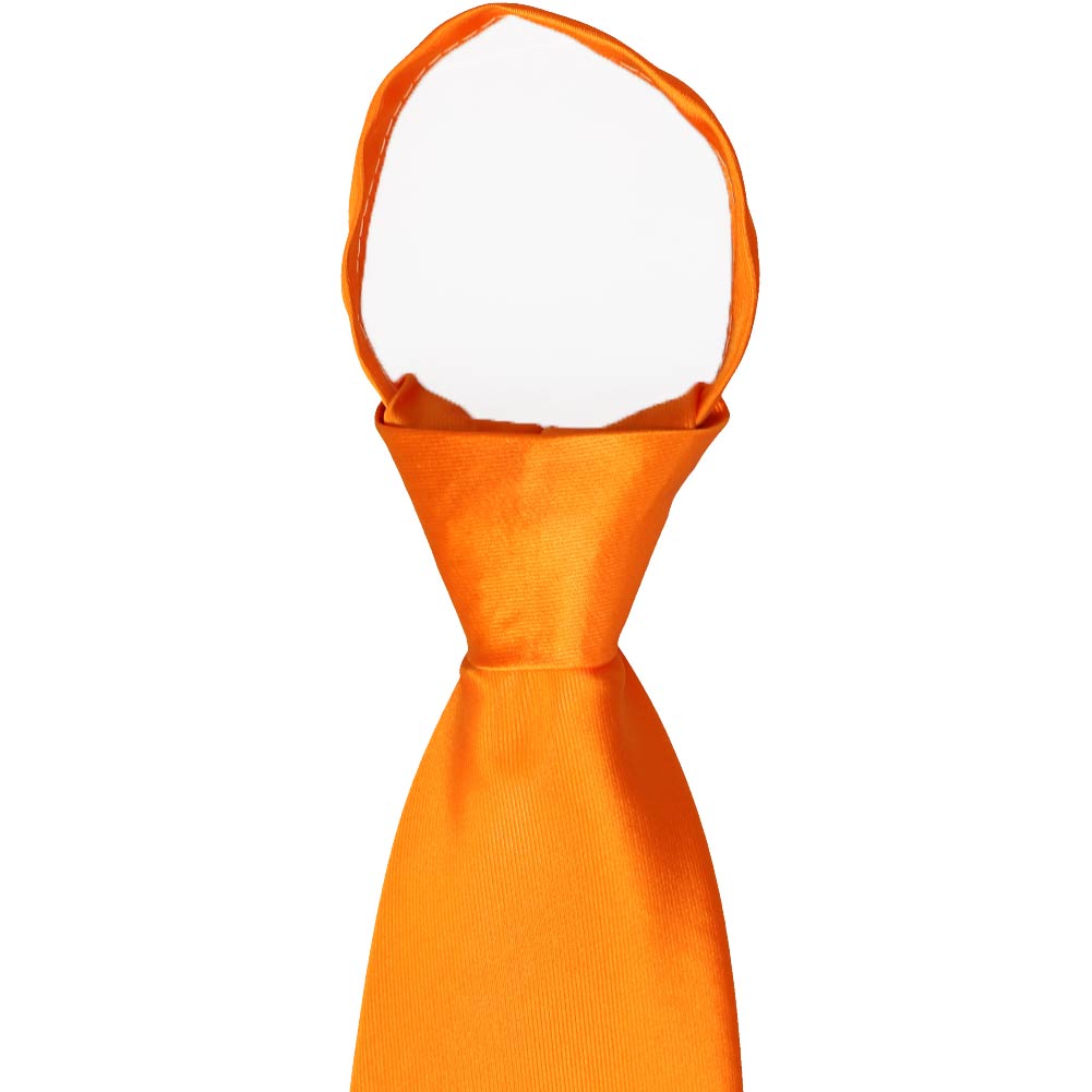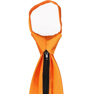 This pre-tied orange zipper tie is an easy alternative to a standard-style necktie. A zipper in the tie tail expands the collar to fit over the head and tighten back to your neck size. It is made from a heavyweight woven material with slight ribbing. Choose from a standard men's 20-inch length or shorter 17-inch length.