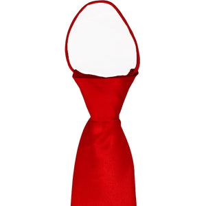 This red solid color zipper tie is pre-tied and easy to use. When worn, it will look like a standard necktie. However, a zipper in the tie tail allows the collar to quickly expand and fit over the head without having to tie a knot. These red zipper ties are available in an extra-long men's 23-inch length for big and/or tall men, standard men's 20-inch length, as well as a 17-inch length that is ideal for women, teens or shorter men. These pre-tied ties are popular for individual use, but are also great for creating a uniform look among your group or staff. Add a matching pocket square for a refined look.