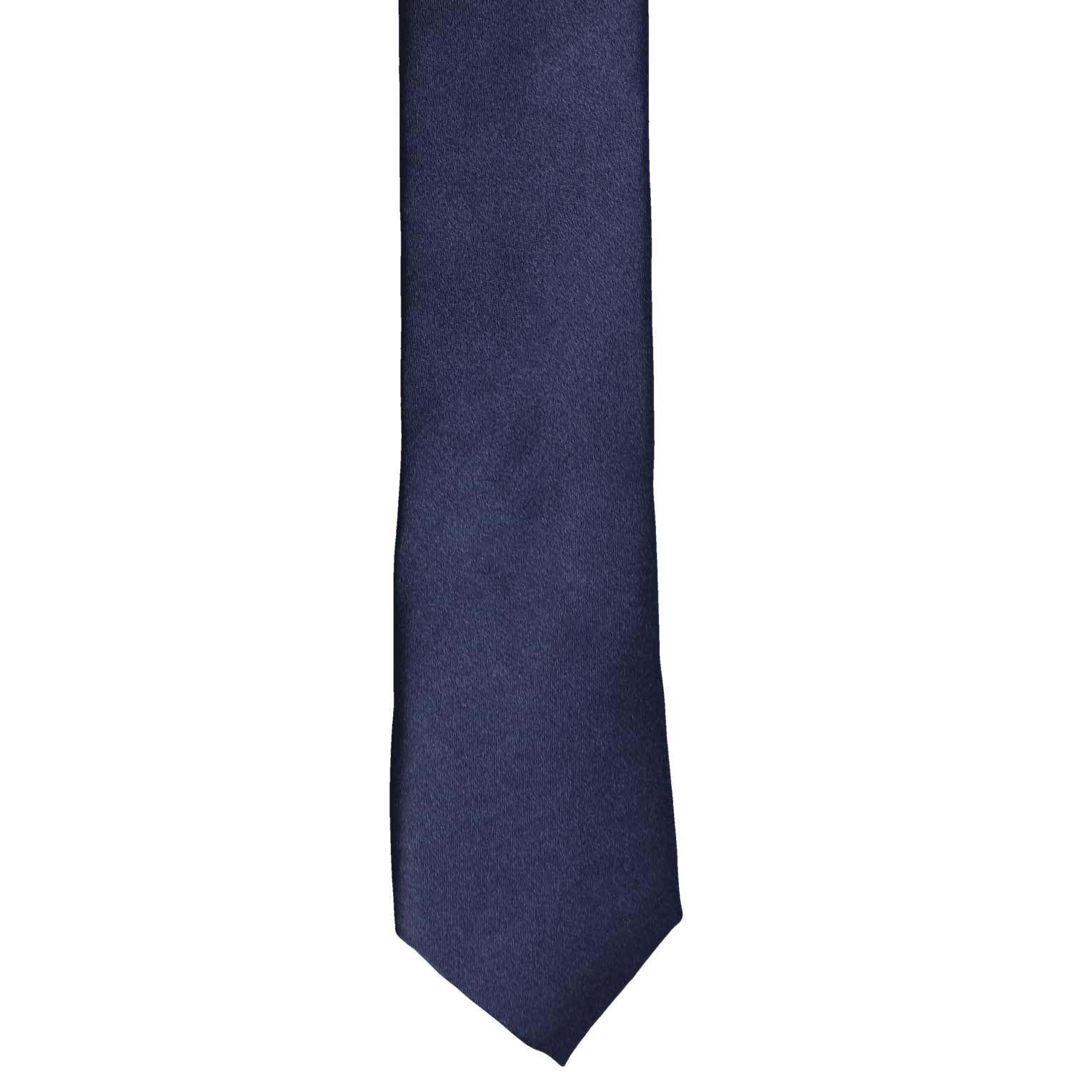This skinny tie features a shiny, satin finish. It will look great for formal occasions like weddings or Prom, but it can also be worn professionally in creative or casual workplaces. The color is very similar to a navy blue, so it's easy to coordinate with your existing wardrobe.