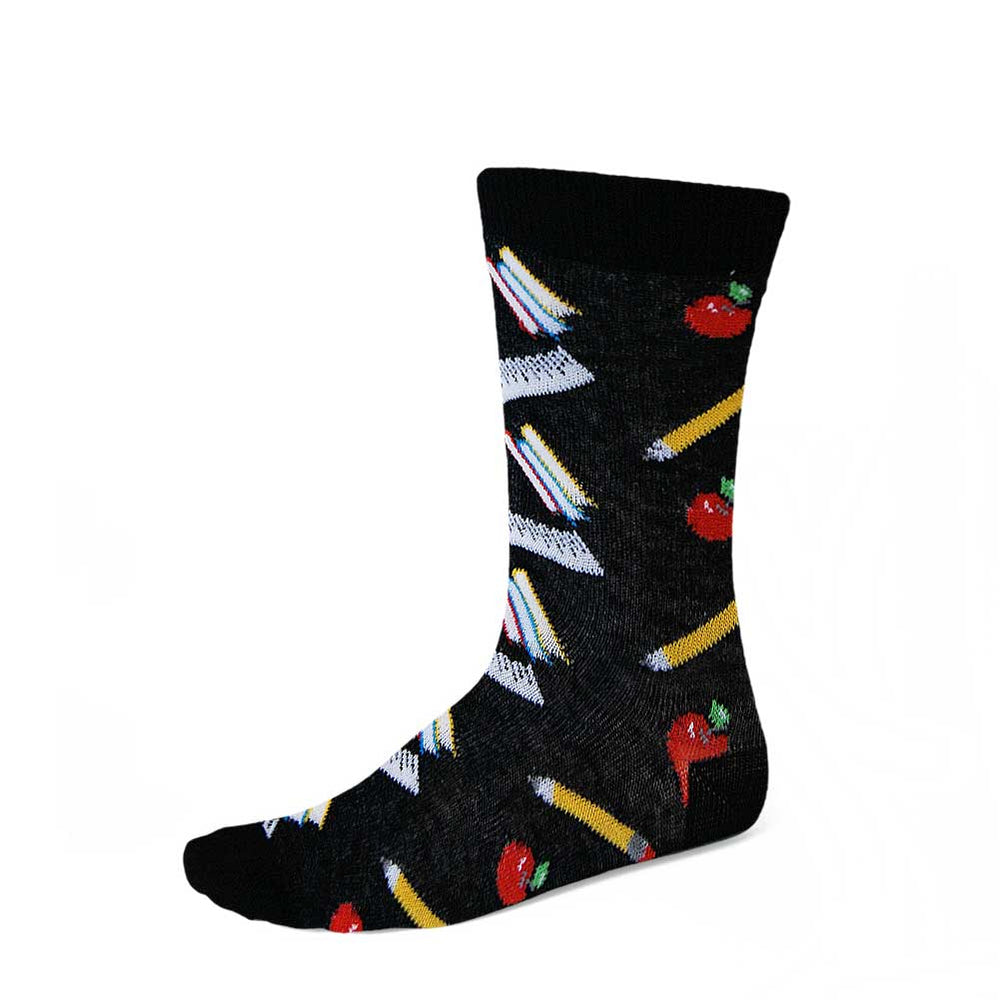 Great teacher gift! School supplies tumble about on these women's black socks. Wear them while you're on your feet teaching or give them to your favorite teacher to show your appreciation.