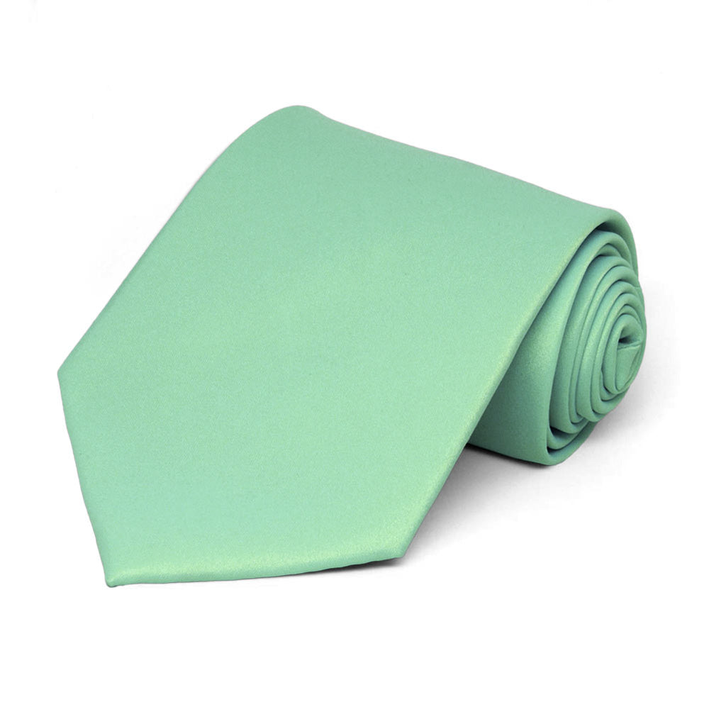 The 3.25-inch width complements both men and women and the 58-inch length is standard sized to fit most adults. These seafoam ties are made from a durable, all polyester material with a very light satin finish.