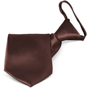 This pre-tied brown zipper tie is an easy alternative to a standard-style necktie. A zipper in the tie tail expands the collar to fit over the head and tighten back to your neck size. It's made from a heavyweight woven material with slight ribbing. Choose from a standard men's 20-inch length or shorter 17-inch length.
