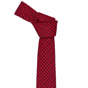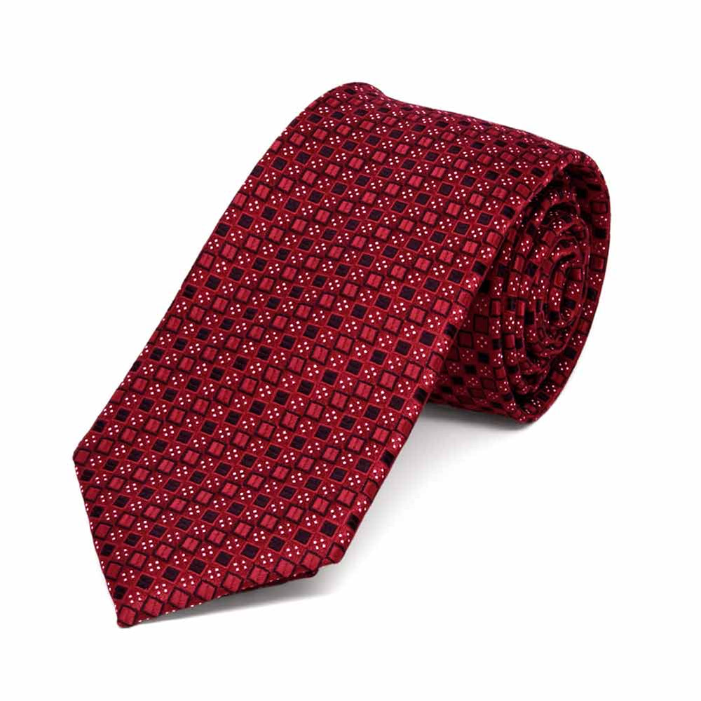 Embrace the holiday season with this handsome crimson red slim necktie, perfect for chilly days and festive occasions. The crimson red and black square pattern adds a touch of elegance, making it ideal for pairing with a black suit at formal events like winter weddings. For a more casual office look, style it with slacks and a button-down shirt. With its classic pattern and versatile color scheme, this tie is sure to become a favorite in your cold-weather wardrobe.