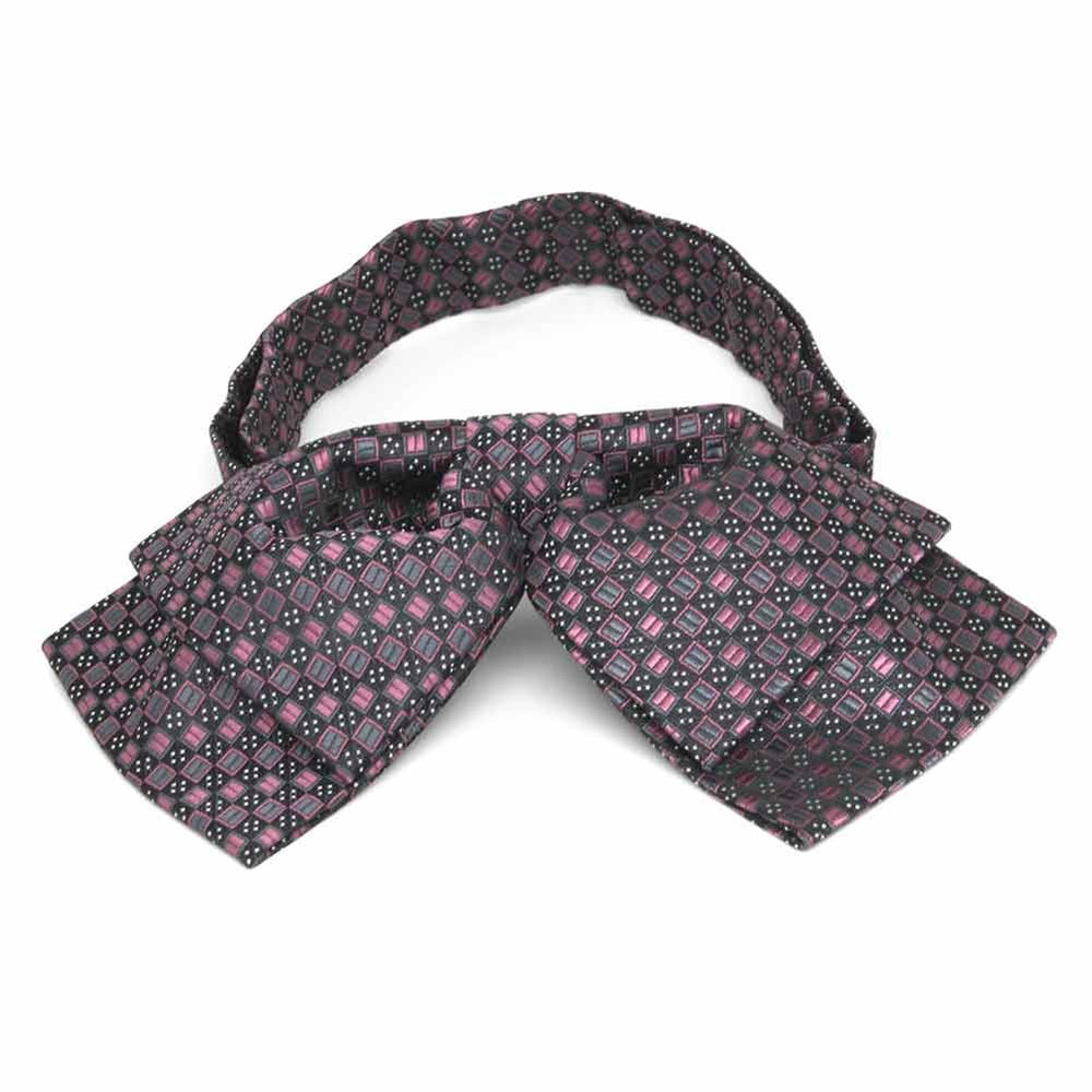 Exclusively ours! A pre-tied, dark pink floppy bow tie in a low-key, square pattern design. The band collar adjusts to fit most men and women. Suited for matching women's uniform wear or men's vintage-inspired attire.